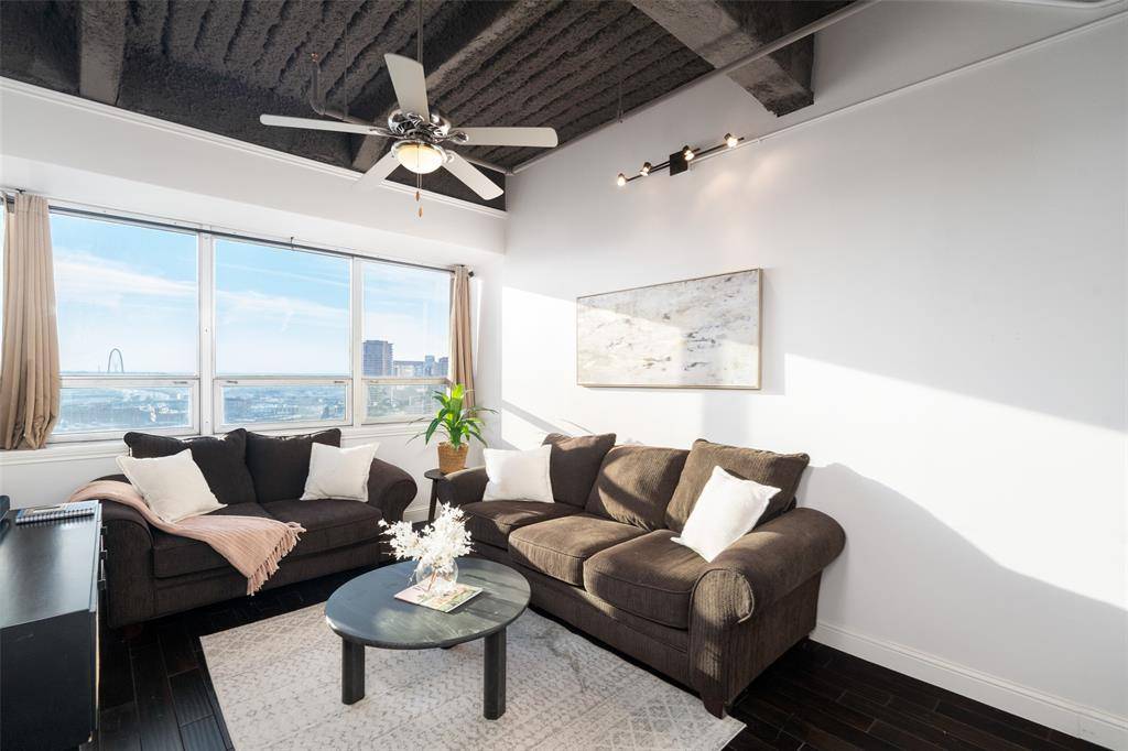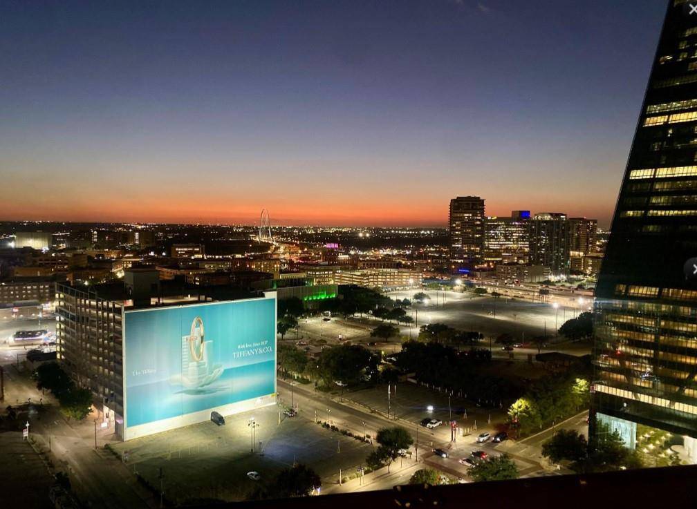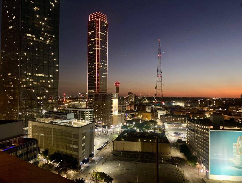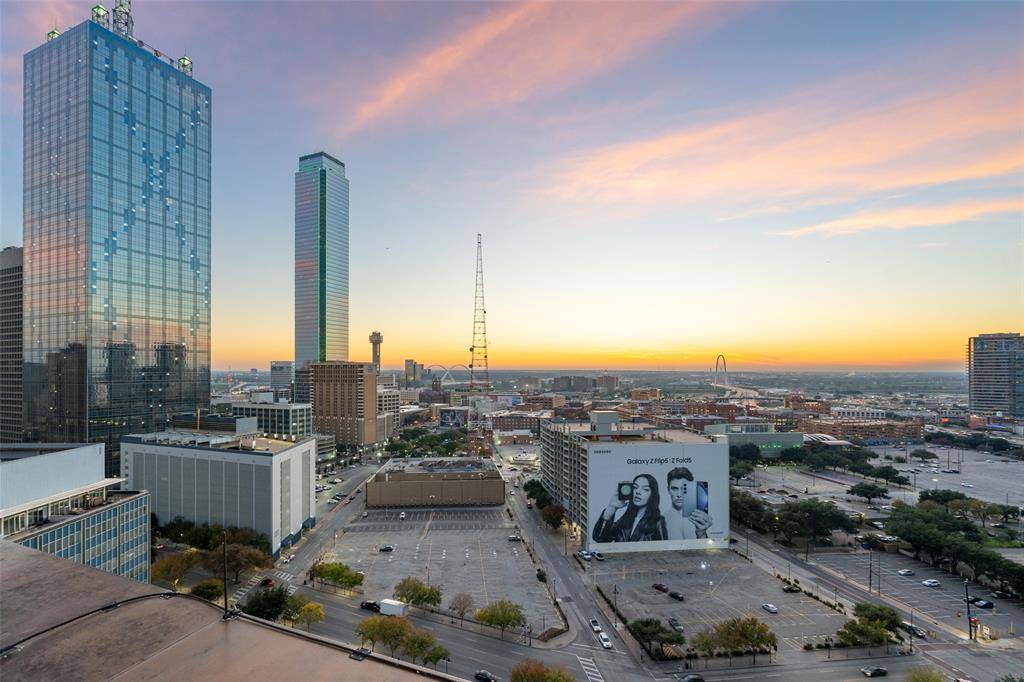 Seller says Sell!!! Stunning urban chic penthouse perfect for those seeking a lock-and-leave lifestyle or anyone who wants to immerse themselves in the city's electric energy. This 15th-floor gem is must-see. Imagine unwinding on the expansive 1000 sqft private rooftop terrace, where breathtaking views of the iconic downtown skyline and mesmerizing light shows from Reunion Tower create a magical backdrop for your gatherings. You'll be surrounded by soaring skyscrapers and legendary landmarks, with arts, shopping, and dining just a stroll away. Ride the express elevator directly to the penthouse floor where your oasis awaits! Here you'll be greeted by gorgeous African Mahogany wood floors that flow seamlessly into a thoughtfully designed split floor plan. The open kitchen boasts a gas stove, luxurious granite countertops, and a spacious walk-in pantry. Retreat to the primary bathroom, featuring a serene Japanese soaking tub and a separate walk-in shower for your relaxation needs. Conveniently positioned between bedrooms is a utility room that includes stackable washer and dryer along with a sink. Ascend the stylish spiral staircase to the private terrace and discover a versatile third bedroom or flex space complete with an ensuite European bath—perfect for guests, office or in home gym! This incredible unit offers 1 parking space in the private garage. Enjoy peace of mind with 24-hour security and take advantage of a superb location within walking distance of the Dart station, ATT Performing Arts Center, Dallas Museum of Art, Klyde Warren Park, Historic West End, and the Perot Museum.