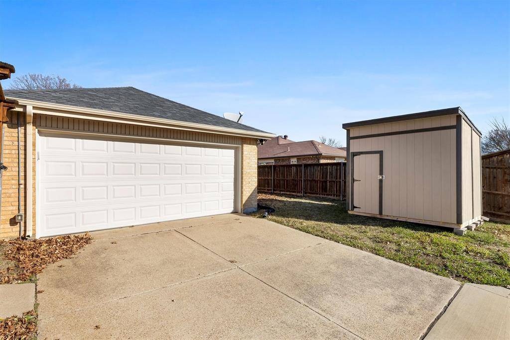 Welcome home to 828 Arbor Downs, a charming single-family brick ranch offering comfort, functionality, and thoughtful updates throughout. The home features a 2 car garage and a true backyard oasis with a sparkling pool, board-on-board privacy fencing, and a spacious wooden deck with pergola, perfect for outdoor enjoyment, relaxing evenings and entertaining. Inside, the home offers over 1,550 square feet of thoughtfully designed living space with an inviting open floor plan that welcomes you upon entry. The large kitchen overlooks the dining and living areas and features updated cabinetry, granite countertops, a tumbled stone backsplash, tile flooring, and recently updated appliances. The open layout is perfect for both everyday living and entertaining, enhanced by hardwood flooring in the living room, abundant of natural light, and a cozy wood burning fireplace. Both generously sized bedrooms include ensuite bathrooms, each thoughtfully updated. The primary bathroom features a walk-in shower, updated cabinetry, and refreshed flooring, offering a clean, modern feel while maximizing functionality. This well maintained home provides peace of mind with numerous recent upgrades, including a new HVAC system and mini-split HVAC (2024), attic insulation (2021), an upgraded electrical panel (2024), and a new hot water heater (2024). Additional highlights include two outdoor storage sheds and the convenience of all appliances conveying with the property, including the refrigerator and washer and dryer. Situated in an established neighborhood in the heart of Plano with mature trees and easy access to Highways 75, 121, and 190, this home offers the perfect balance of comfort and connectivity. A must-see property that truly checks all the boxes.