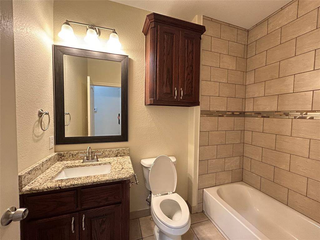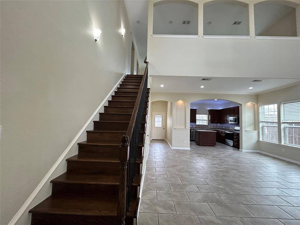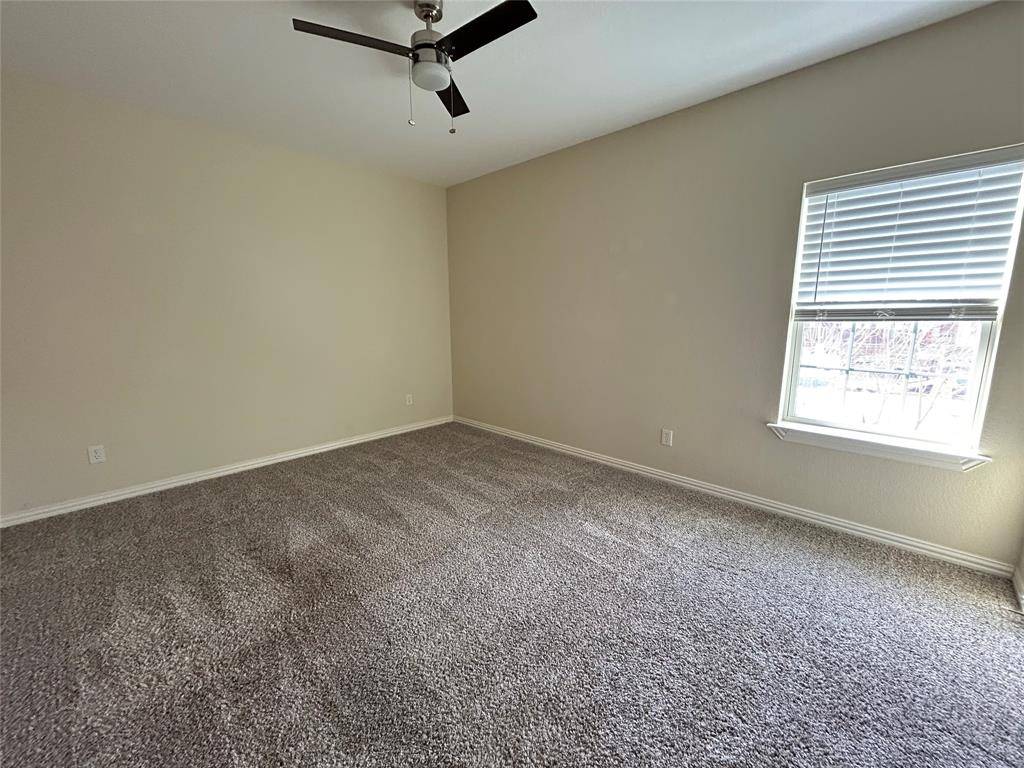 Upstairs is a large second living area with an electric fireplace and access to a covered balcony overlooking views toward Lake Lewisville — the perfect spot for morning coffee or evening sunsets. There's also a flexible space ideal for a home office or study area.