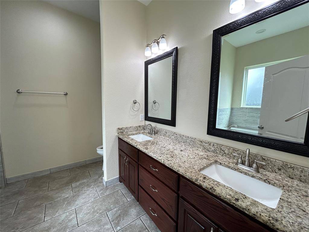 The second floor includes two additional bedrooms with a shared full bathroom, plus a second primary suite upstairs with its own private full bathroom and walk in closet — great for guests, multi-generational living, or added privacy.