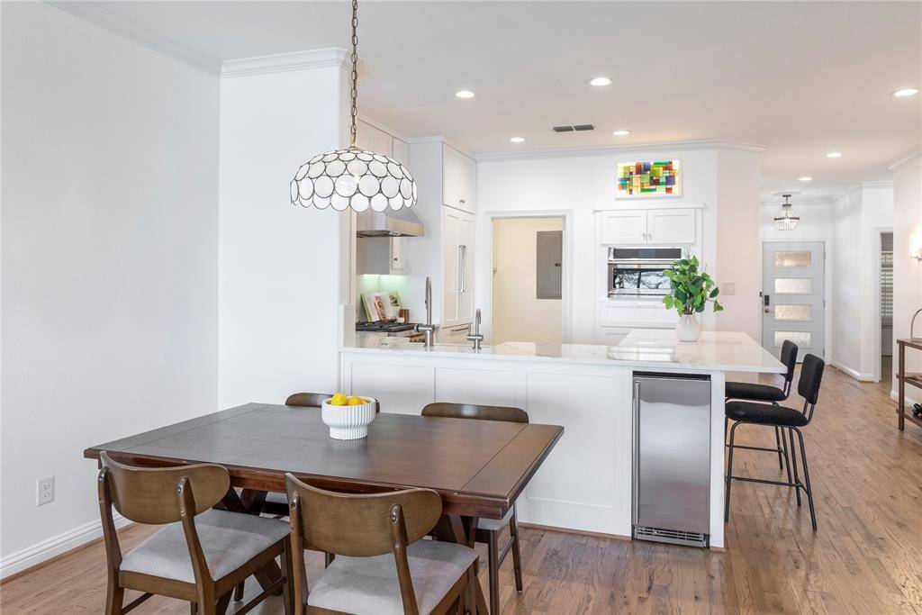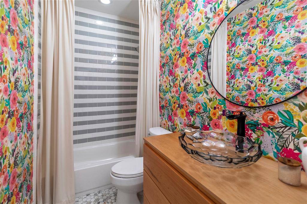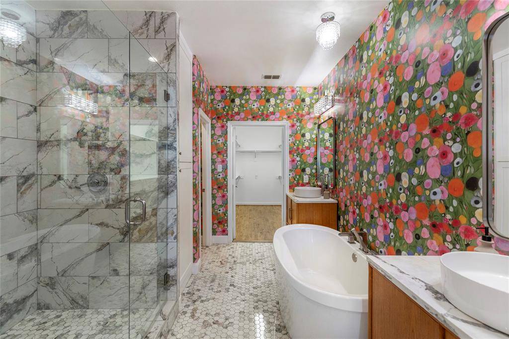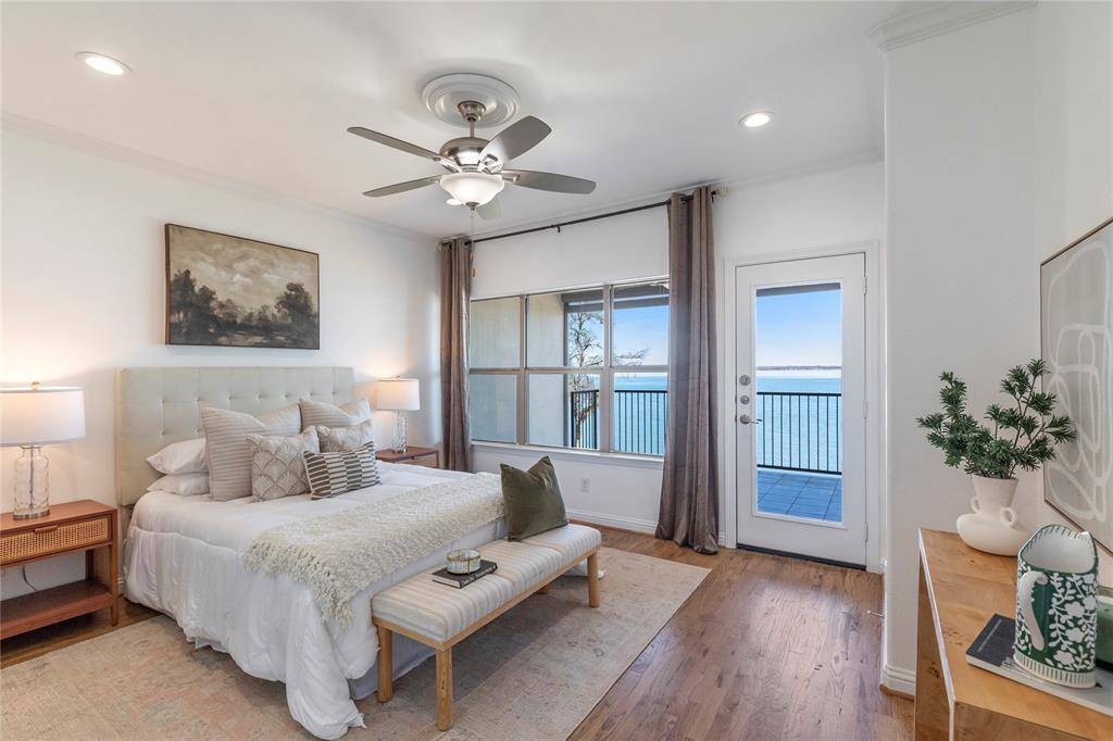 Experience refined waterfront living in the heart of Lake Dallas. This exceptional 3-bedroom, 2-bath residence offers breathtaking, unobstructed lake views and a private covered balcony perfectly positioned for peaceful mornings and sunset evenings. The open-concept design blends sophistication and comfort, featuring real hardwood floors, crown molding, custom designer lighting, high-end stainless ceiling fans throughout, and expansive windows framing panoramic water views. A striking marble gas fireplace with antique mantel anchors the living space, while power solar shades, smart switches, integrated audio wiring, Cat 6 connectivity, and a digital security system provide modern convenience. The chef-inspired kitchen showcases a dramatic waterfall-edge quartz island with seating, custom floor-to-ceiling cabinetry with illuminated glass accents, a professional-grade Wolf gas range, built-in refrigeration, premium appliances, farmhouse sink with instant hot and cold water system, and under-cabinet lighting—designed for both entertaining and everyday living. The primary suite serves as a private retreat with direct balcony access and sweeping lake views. The spa-inspired bath features a freestanding soaking tub, heated jacuzzi tub, oversized glass-enclosed shower with Italian tile, and dual custom vanities with vessel sinks. Secondary bedrooms are generously sized with walk-in closets, and the secondary bath is beautifully appointed with imported tile and artisan details. Extensive upgrades continue throughout, including recently updated core systems, refined custom craftsmanship, secure electronic entry, and two deeded garage parking spaces. Residents enjoy gated entry, a newly remodeled saltwater lakeside pool and spa, clubhouse, fitness center, marina access, and scenic walking paths—all minutes from dining, shopping, and I-35. A rare opportunity you won't want to miss!
