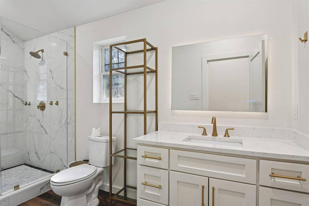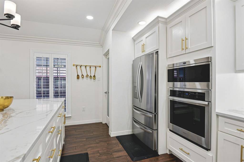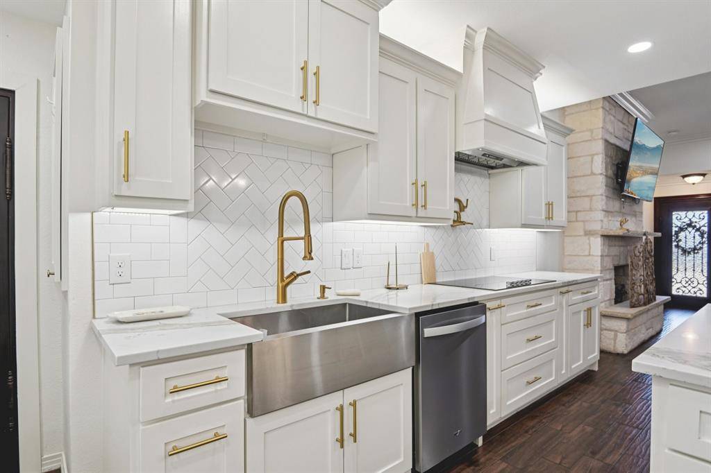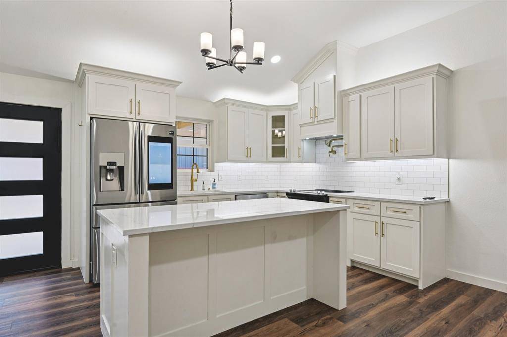 The main residence features an open-concept living area with fireplace that flows seamlessly into a chef's kitchen with custom cabinetry, oversized island with bar seating, quartz countertops and gas range. The converted garage offers a flexible office, gym, or bonus space. The spacious primary suite, two secondary bedrooms, and two fully renovated bathrooms complete the layout. The private-entry ADU lives like a second home — complete with a full kitchen featuring an island, spacious living area, two bedrooms, one full bath and dedicated laundry. Both have central air, tankless water heaters, stainless steel appliances and upgraded finishes throughout. Designed for multigenerational living, guest quarters, executive home office, or income-producing potential, the secondary residence provides true independence while remaining seamlessly connected to the main home.