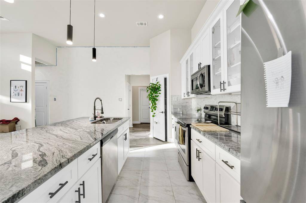 This thoughtfully designed 4-bedroom, 2.5-bath home features an open-concept floor plan with high ceilings and abundant natural light throughout. Durable vinyl flooring flows through the main living areas, complemented by gorgeous granite countertops and stainless steel appliances in the kitchen, perfect for both everyday living and entertaining.