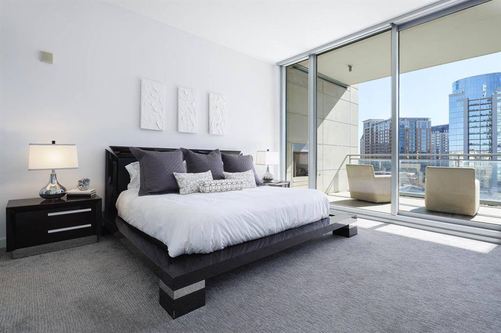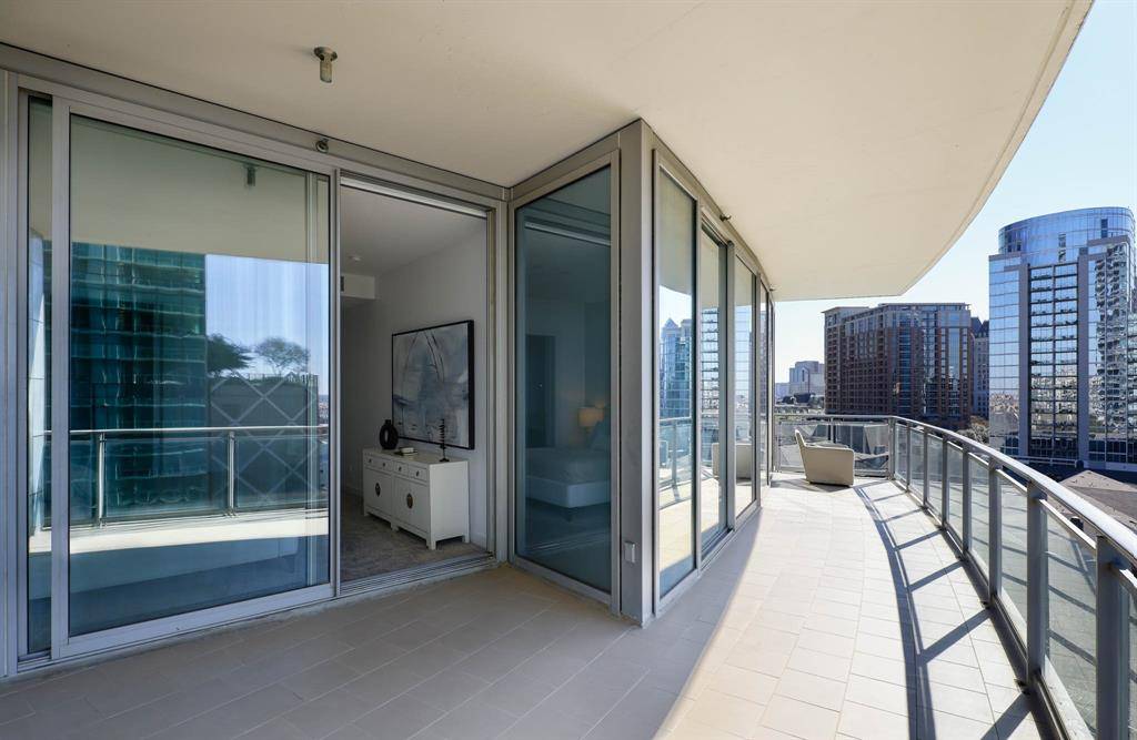 Inside, expansive floor-to-ceiling windows frame sweeping skyline views and overlook the resort-style pool below, creating a dramatic city backdrop from nearly every angle. Two oversized terraces provide over 500 square feet of outdoor living space and front-row seats to unforgettable sunsets — ideal for evening cocktails or a quiet morning coffee above it all.